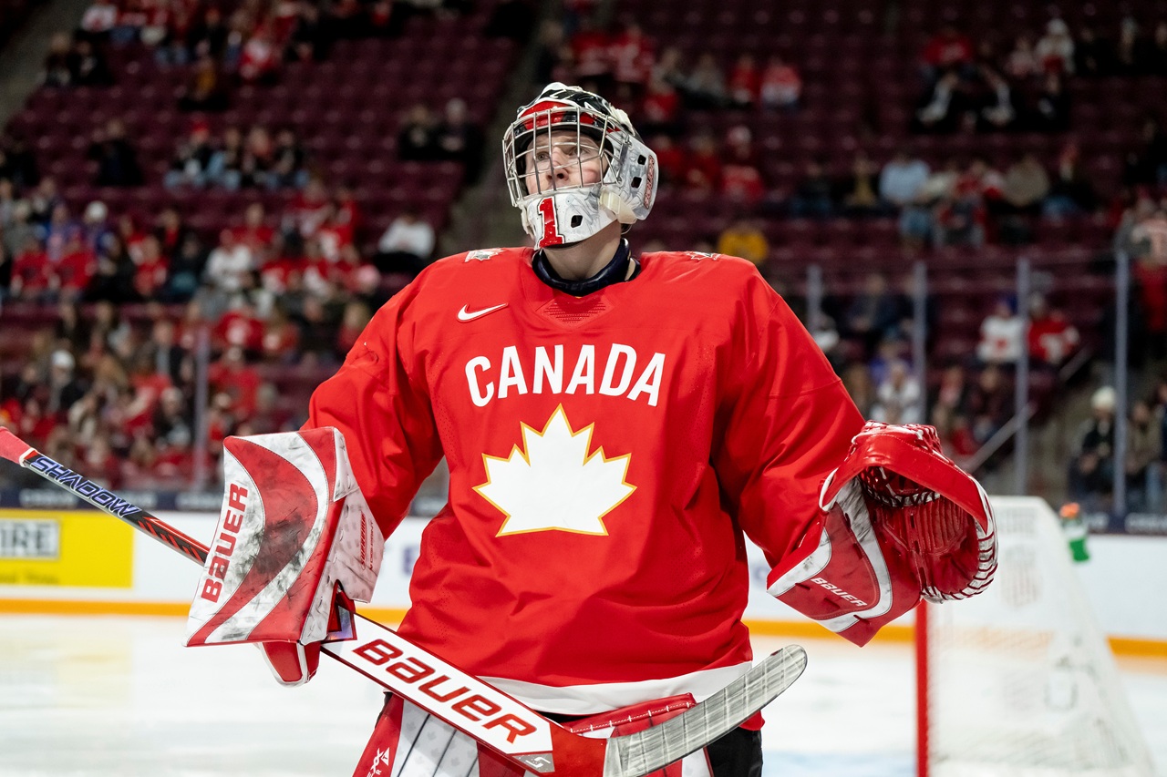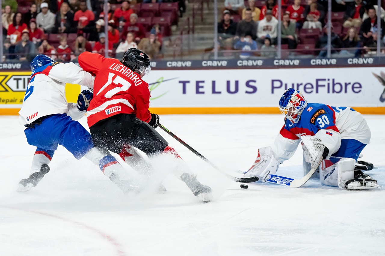 Náš tím pritom zápas nezačal zle, aj keď boli v prvých minútach viac na puku Kanaďania, nemali žiadne vyložené šance a postupne sa začali osmeľovať aj Slováci a dokázali na pár okamihov podržať puk v útočnom pásme. Vyrovnaný stav sme udržali takmer 14 minút. V čase 13:58 sa však prvý raz presadil 18-ročný Cole Reschny a po jeho zásahu sa defenzíva slovenského tímu rozpadla. Krátko nato prekvapil strelou z uhla gólmana Prádela syn kanadskej legendy Tij Iginla, a keď na začiatku 17. minúty dávala bývala dvojka draftu NHL Michael Misa na 3:0, už vtedy bolo jasné, že vrátiť sa do stretnutia bude pre slovenské mužstvo takmer nemožné.
